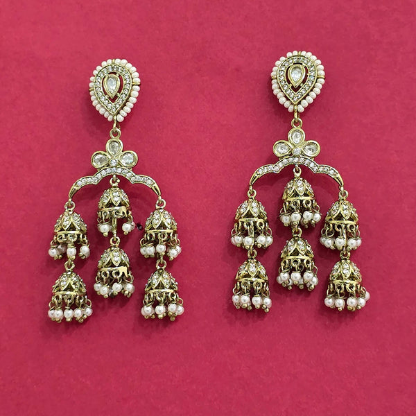 Weight: 55.0 Grams, Height = 190 mm || Width = 30 mm,Long Jhumki,Kashmiri Earring,Matte Gold Plating,Antique Earring