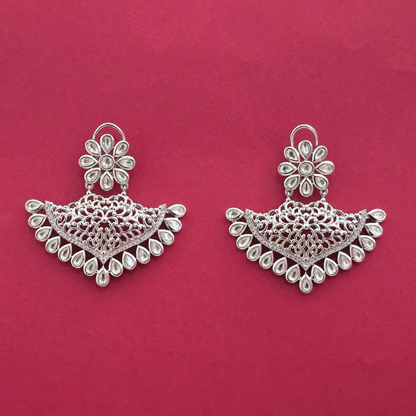 Weight: 12.0 Grams, Height = 40 Mm || Width = 20 Mm,Short Earring,Rhodium Plating,American Diamond Earring
