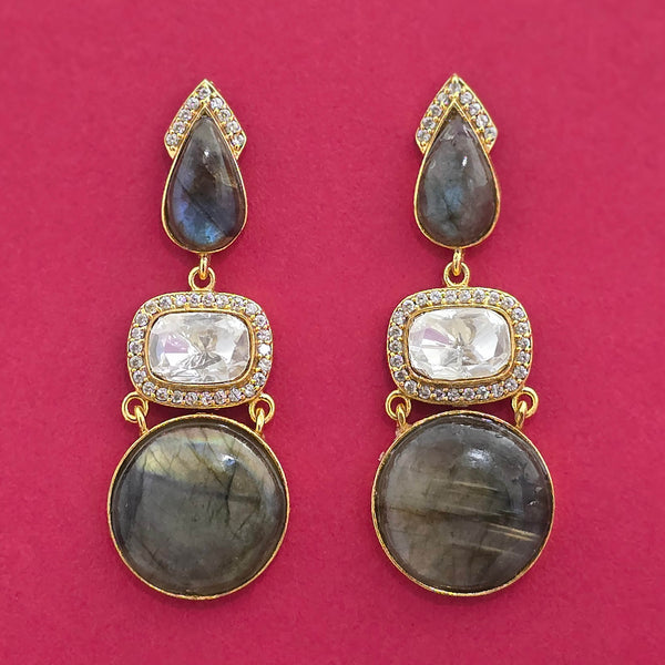 Weight: 23.0 Grams, Height = 86 mm || Width = 20 mm,Long Earring,Mehndi Plating,2 Tone Plating,Rhodium Plating,American Diamond Earring