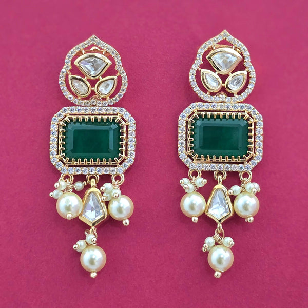 Weight: 11.0 Grams, Height = 48 mm || Width = 14 mm,Moti Earring,2 Tone Plating,Rhodium Plating,American Diamond Earring