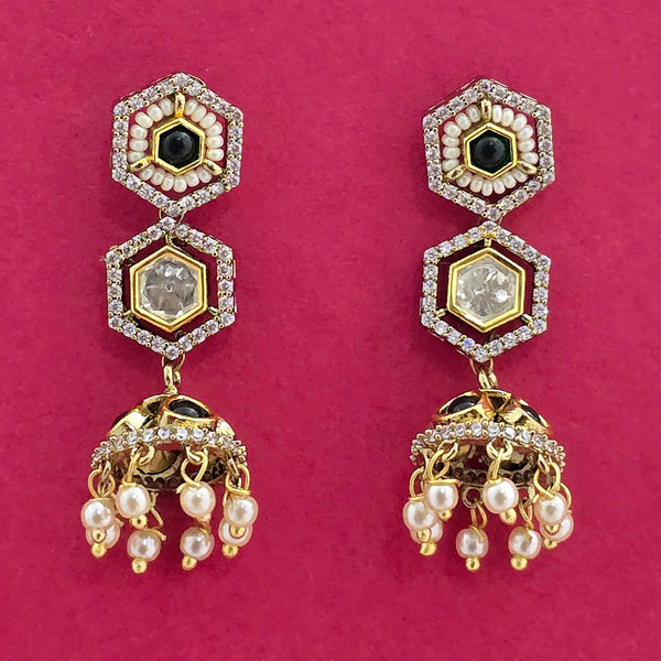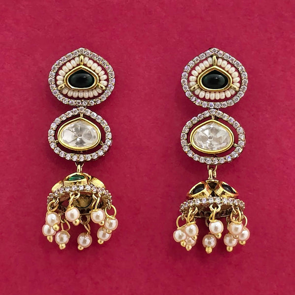 Weight: 19.0 Grams, Height = 52 mm || Width = 34 mm,Moti Earring,Mehndi Plating,2 Tone Plating,Rhodium Plating,American Diamond Earring