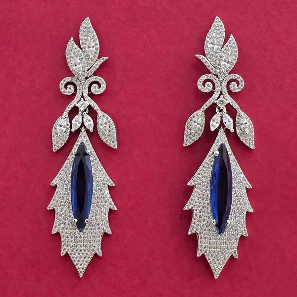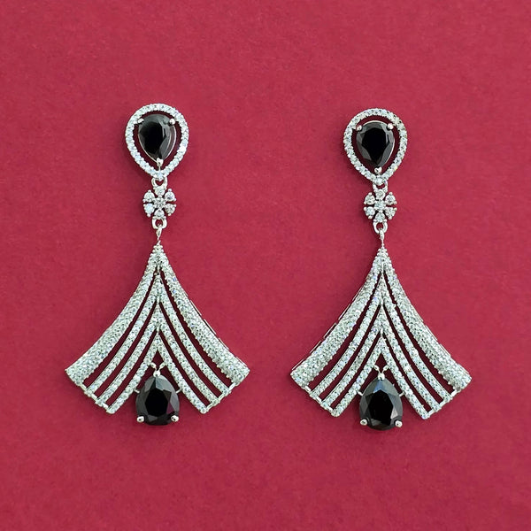 Weight: 17.0 Grams, Height = 98 mm || Width = 11 mm,Long Earring,Rhodium Plating,American Diamond Earring