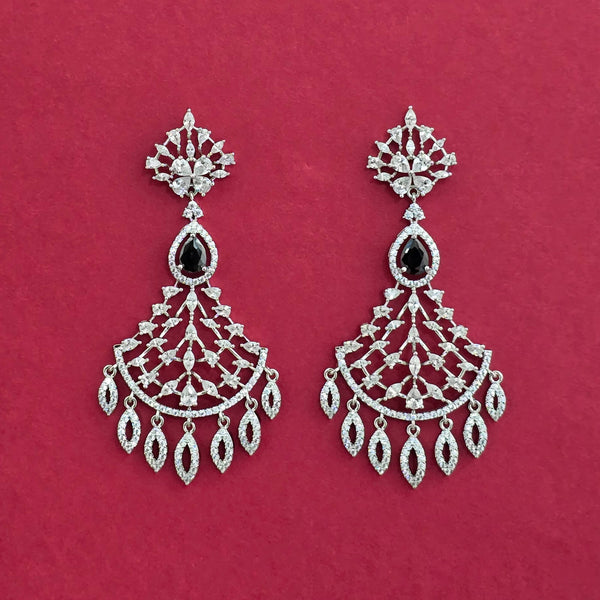 Weight: 22.0 Grams, Height = 75 mm || Width = 25 mm,Classic Earring,Rhodium Plating,American Diamond Earring