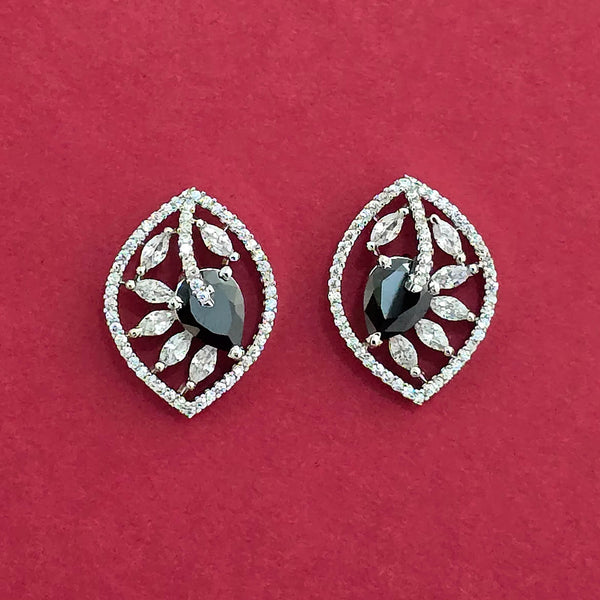 Weight: 4.0 Grams, Height = 8 mm || Width = 8 mm,Stud Earring,2 Tone Plating,Rhodium Plating,American Diamond Earring