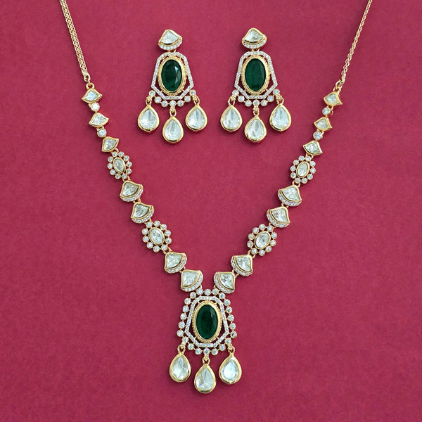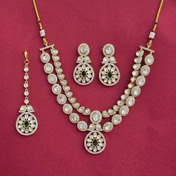 352689 Kundan Classic Necklace Set With Carat Mehndi Plating