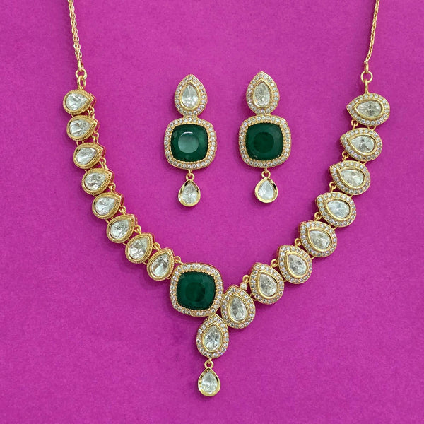 352700 Kundan Classic Necklace Set With Carat Mehndi Plating