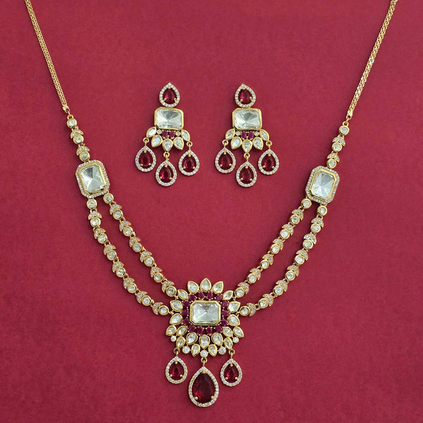 352685 Kundan Classic Necklace Set With Carat Gold Plating