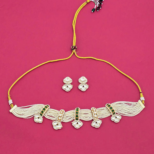352717 Kundan Choker Necklace Set With Carat Gold Plating