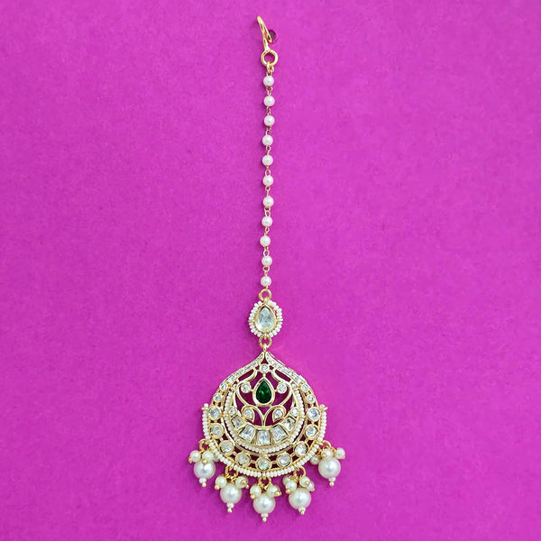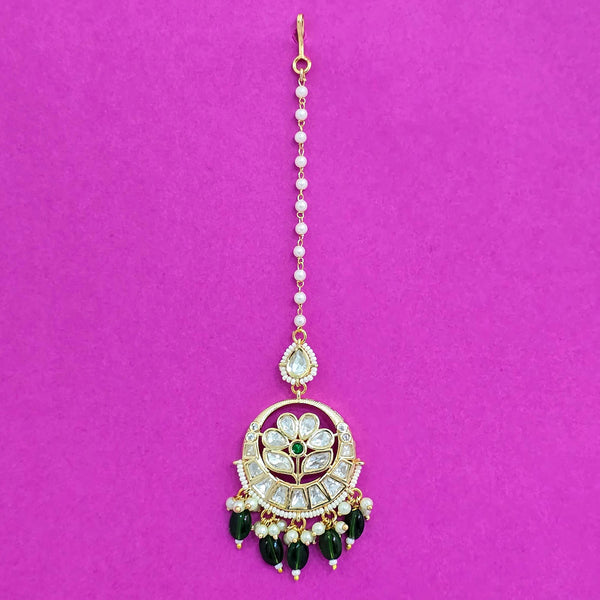 Weight: 21.0 Grams, Height = 135 mm || Width = 55 mm,Chand Style,Carat Plating,Kundan Maang Tikka