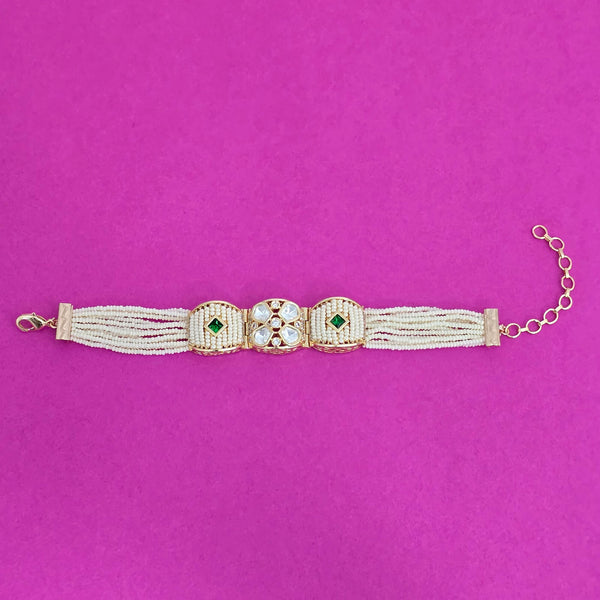 303346 Kundan Moti Bracelet With Carat Gold Plating