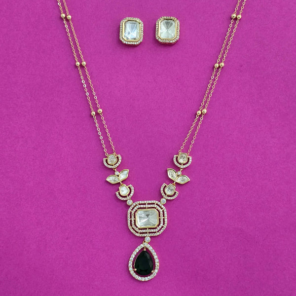 352683 Kundan Classic Necklace Set With Carat Mehndi Plating