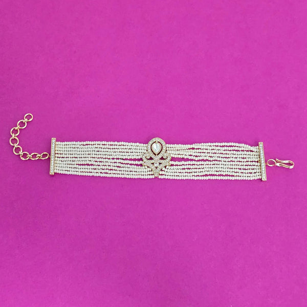 303344 Kundan Moti Bracelet With Carat Gold Plating