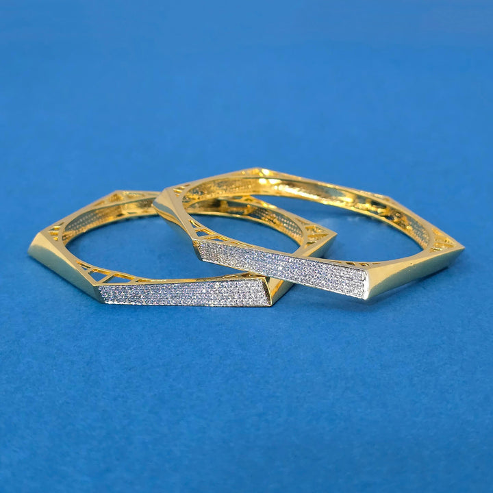 Weight: 31.0 Grams, 2 Pc Bangle,Latest Design,2 Tone Plating,American Diamond Bangle