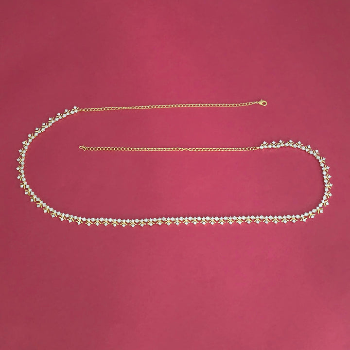 Weight: 50.0 Grams, Length = 38 Inch,Trendy Look,2 Tone Plating,Rhodium Plating,American Diamond Kamar Patta
