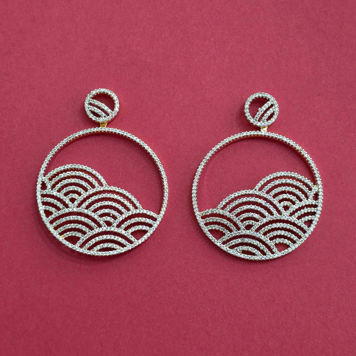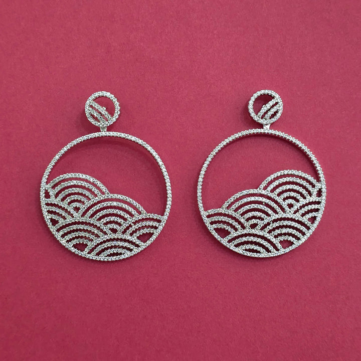 Weight: 22.0 Grams, Height = 52 mm || Width = 40 mm,Trendy Look,Carat Plating,2 Tone Plating,Rhodium Plating,American Diamond Earring