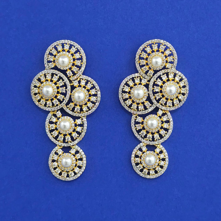 441783 American Diamond Classic Earring With 2 Tone Plating