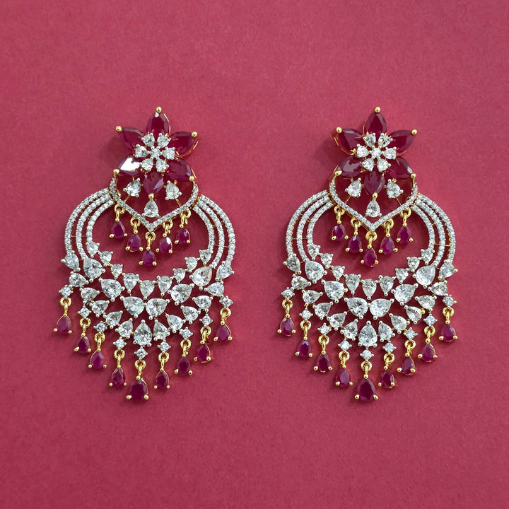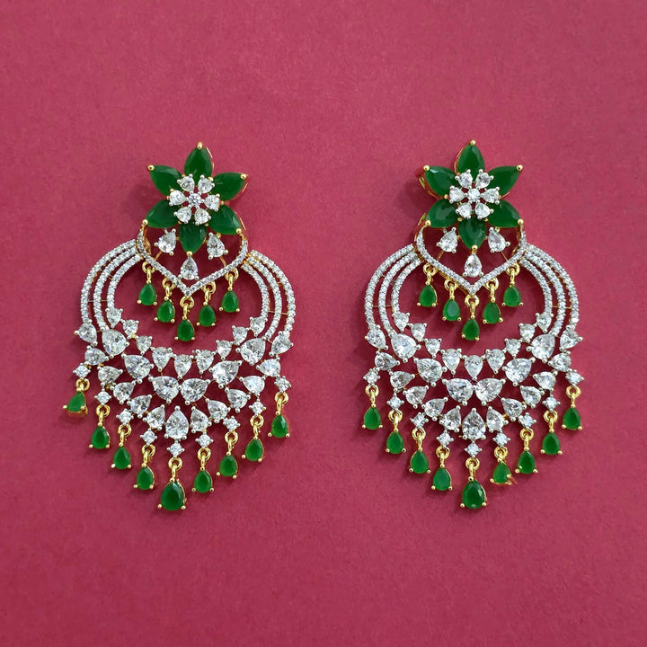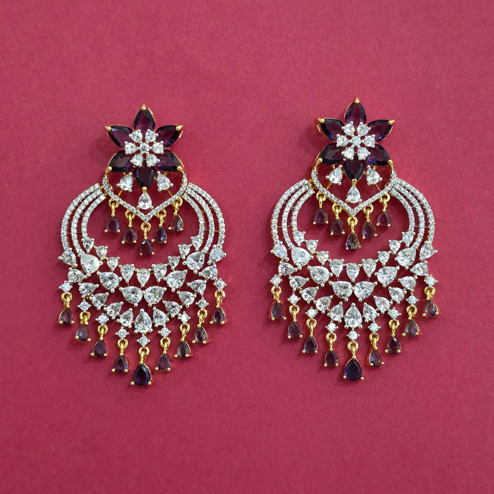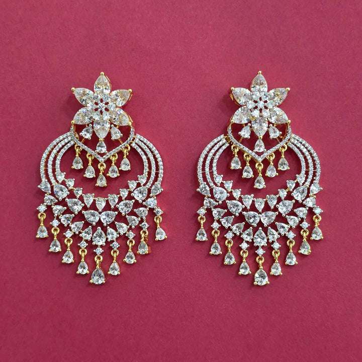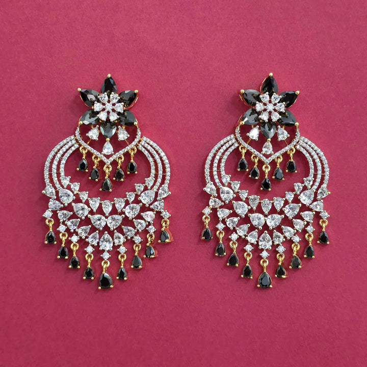 Weight: 29.0 Grams, Height = 65 mm || Width = 40 mm,Trendy Look,2 Tone Plating,American Diamond Earring