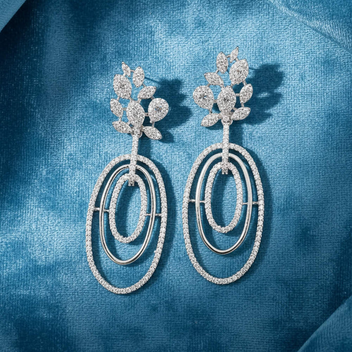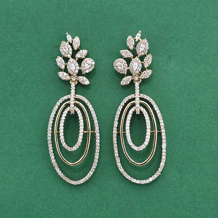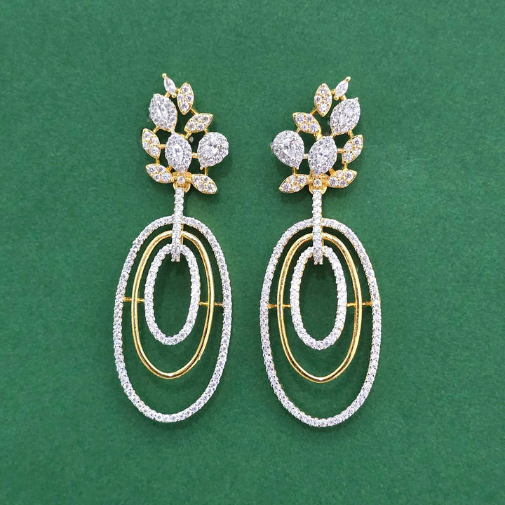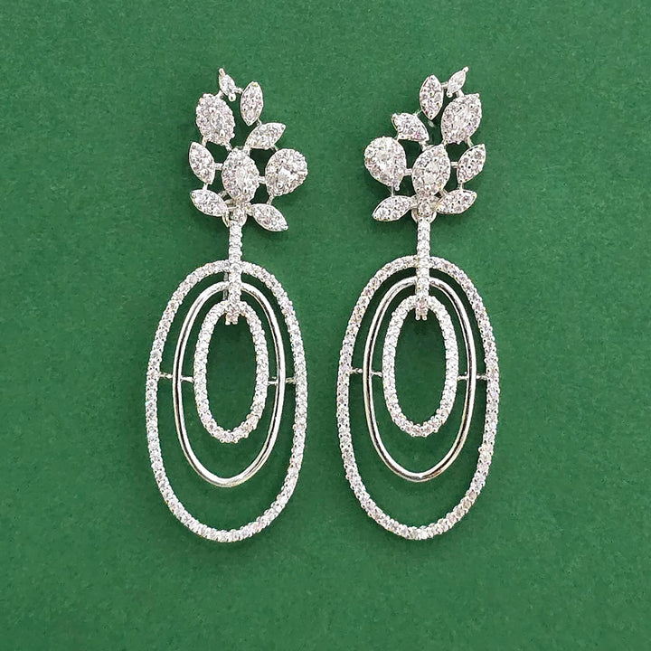 441822 American Diamond Classic Earring With 2 Tone Rhodium Mehndi Plating