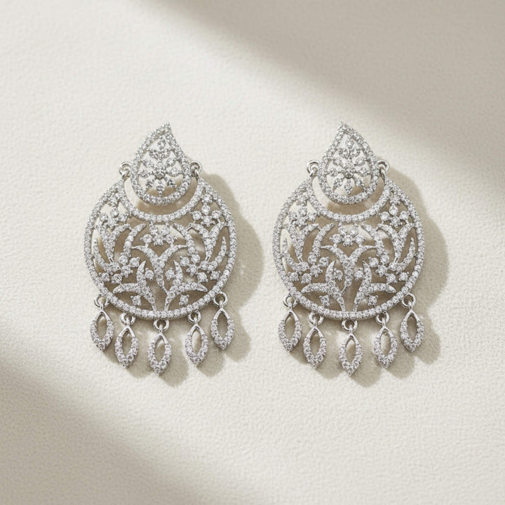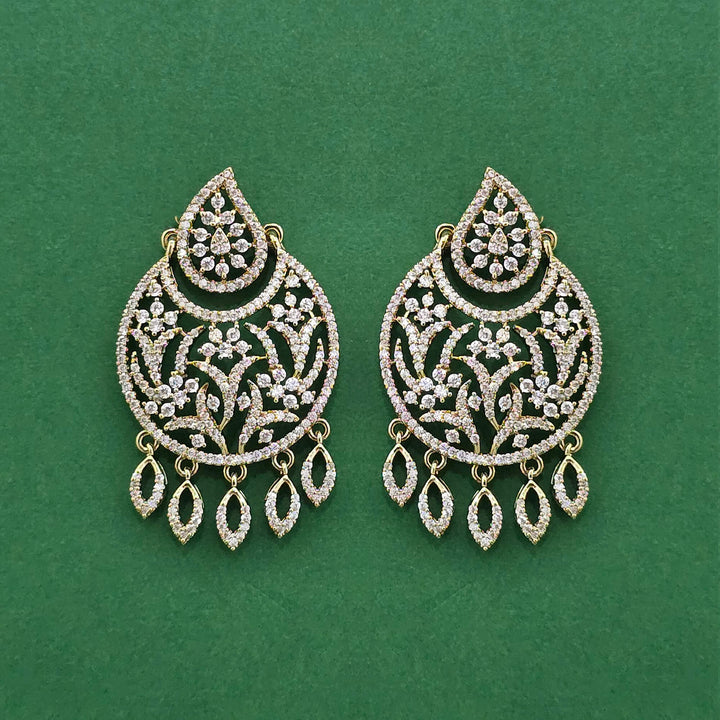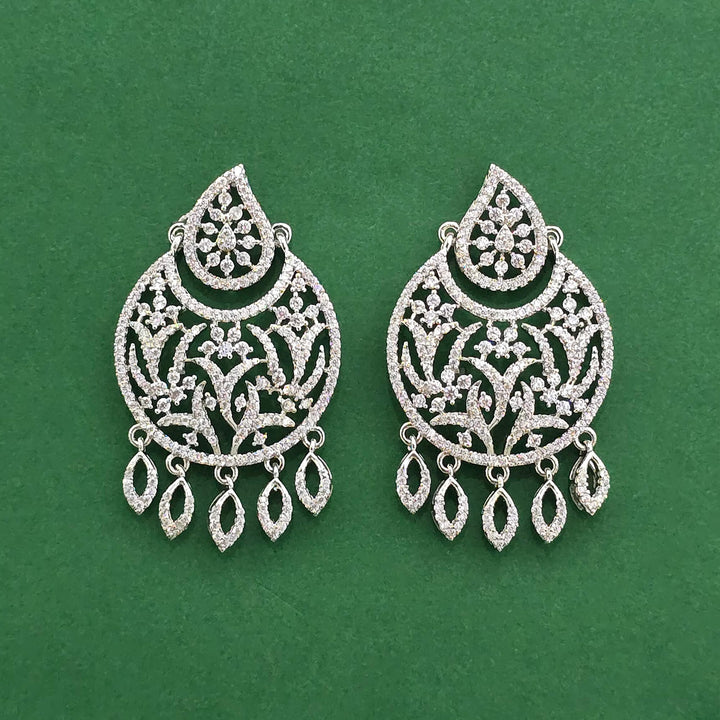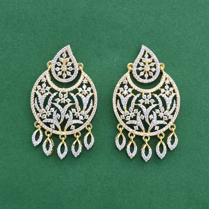 441832 American Diamond Classic Earring With 2 Tone Rhodium Mehndi Plating
