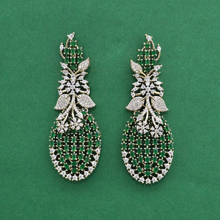 Weight: 26.0 Grams, Height = 65 mm || Width = 24 mm,Bollywood Look,Mehndi Plating,American Diamond Earring