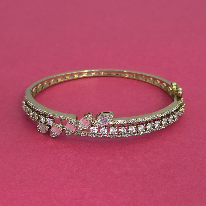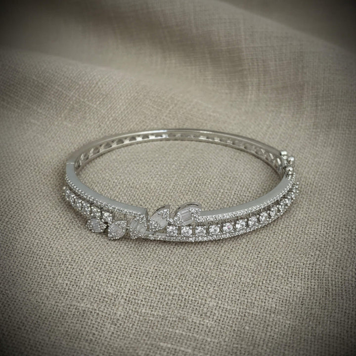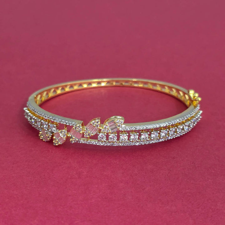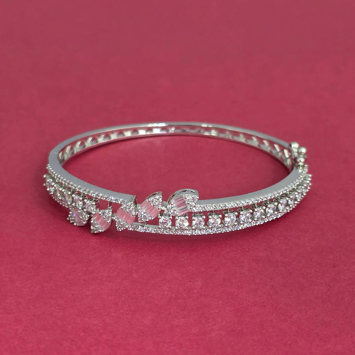 441867 American Diamond Classic Kada With 2 Tone Rhodium Mehndi Plating