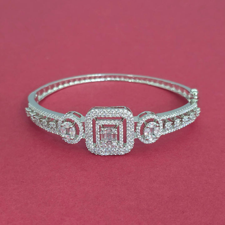 441778 American Diamond Classic Kada With 2 Tone Rhodium Plating