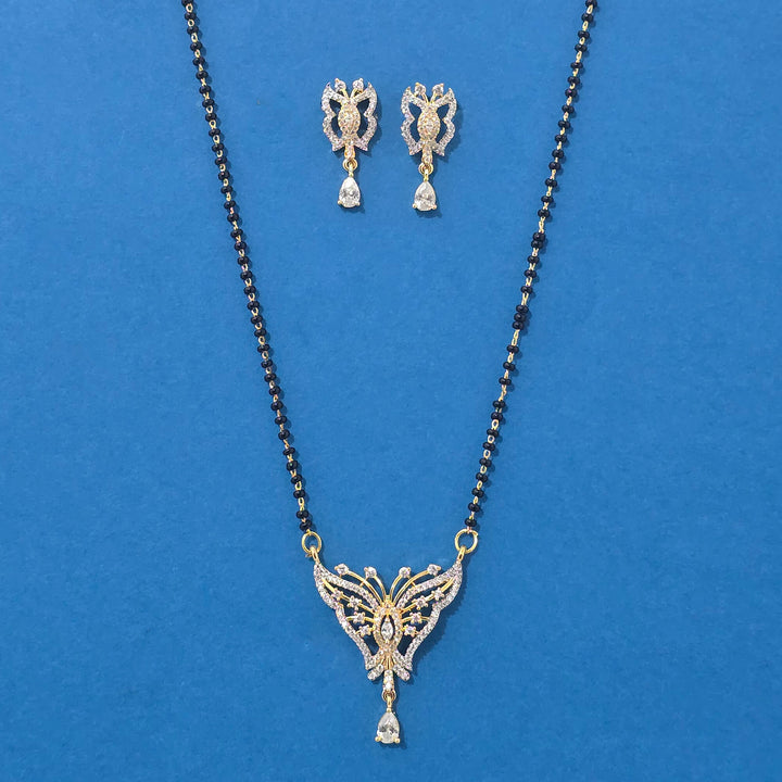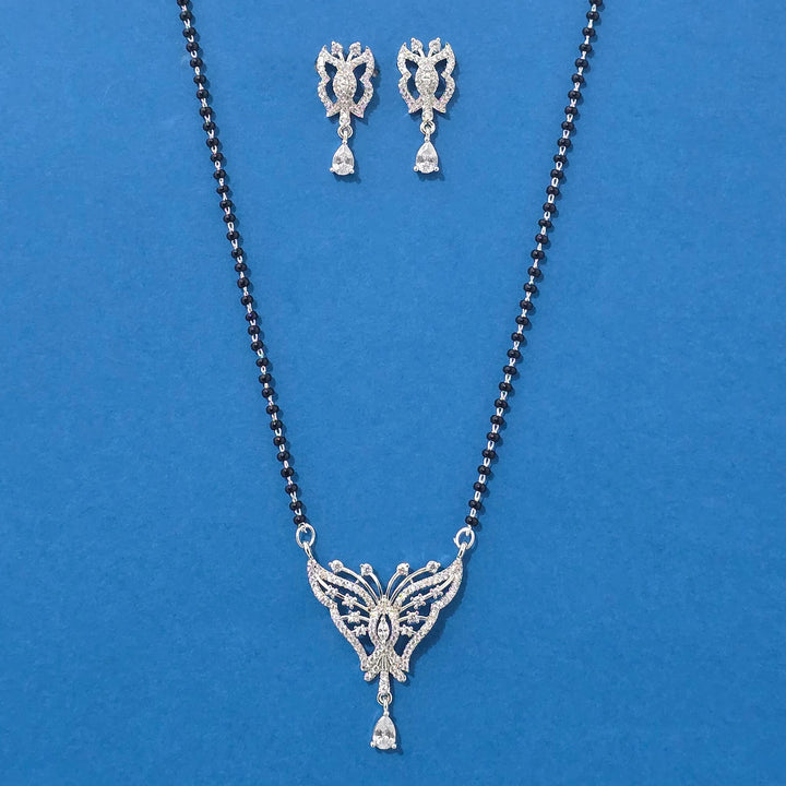 440087 American Diamond Classic Mangalsutra With 2 Tone Rhodium Plating