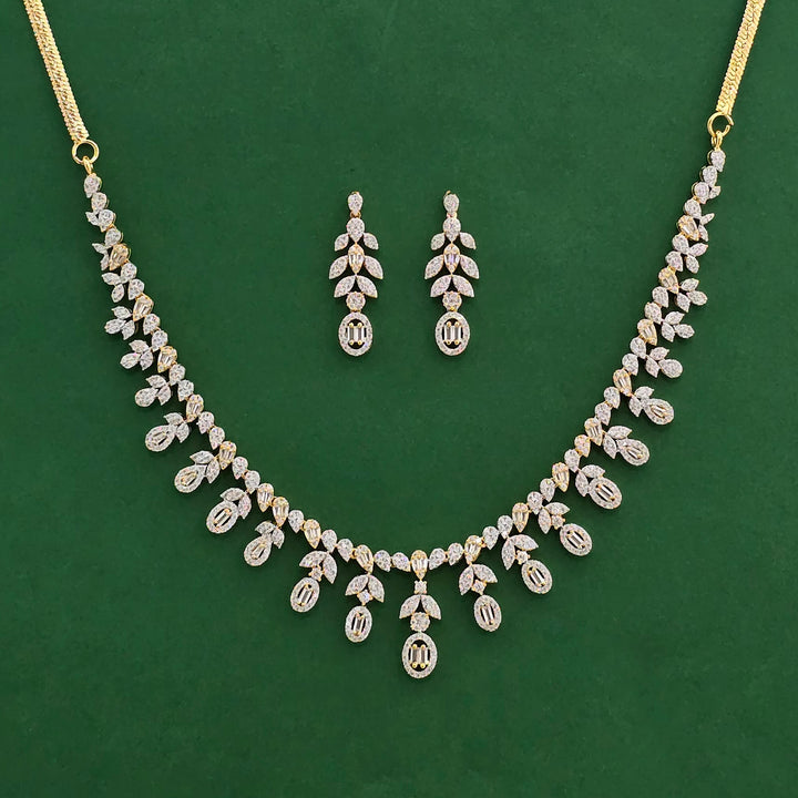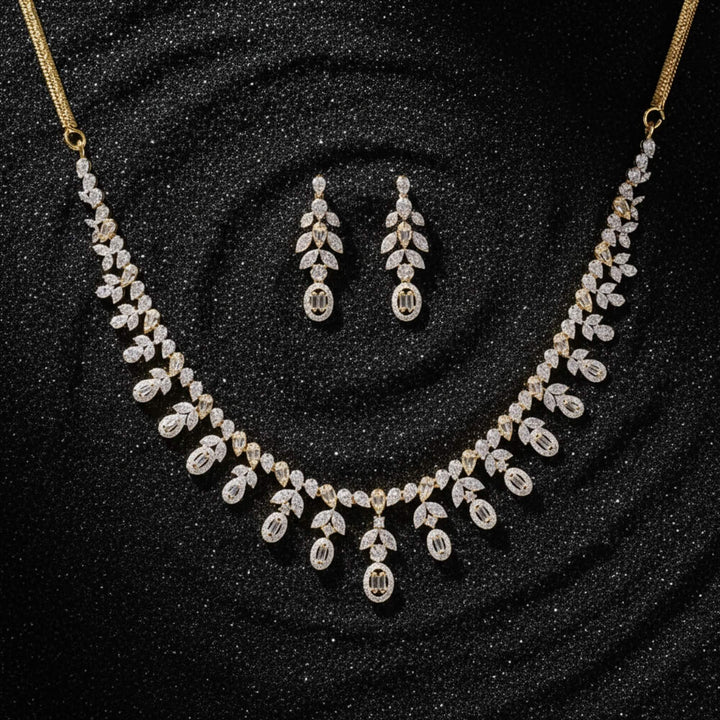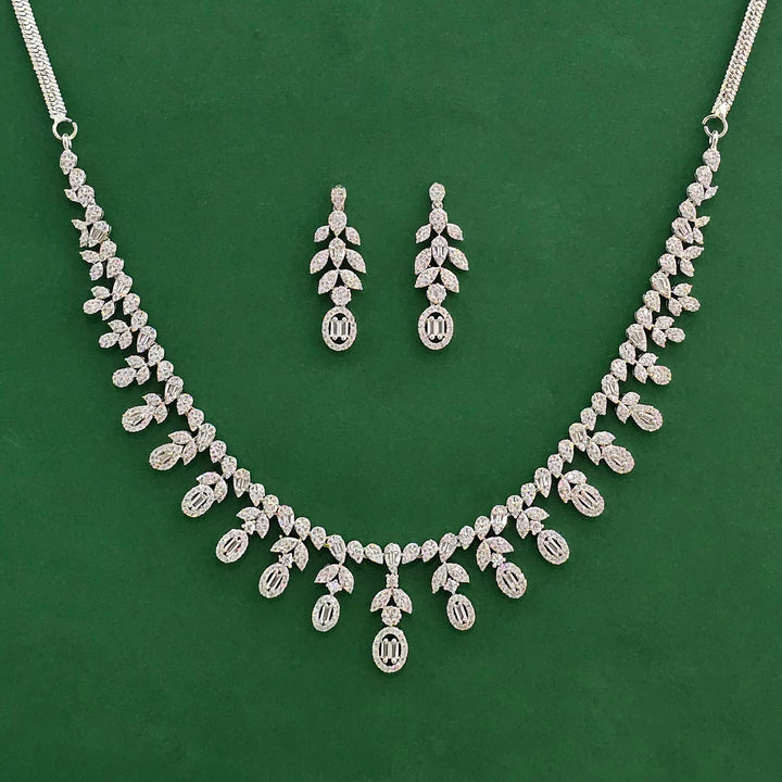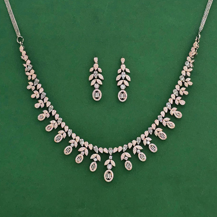 441800 American Diamond Classic Necklace Set With 2 Tone Blackrose Rhodium Plating