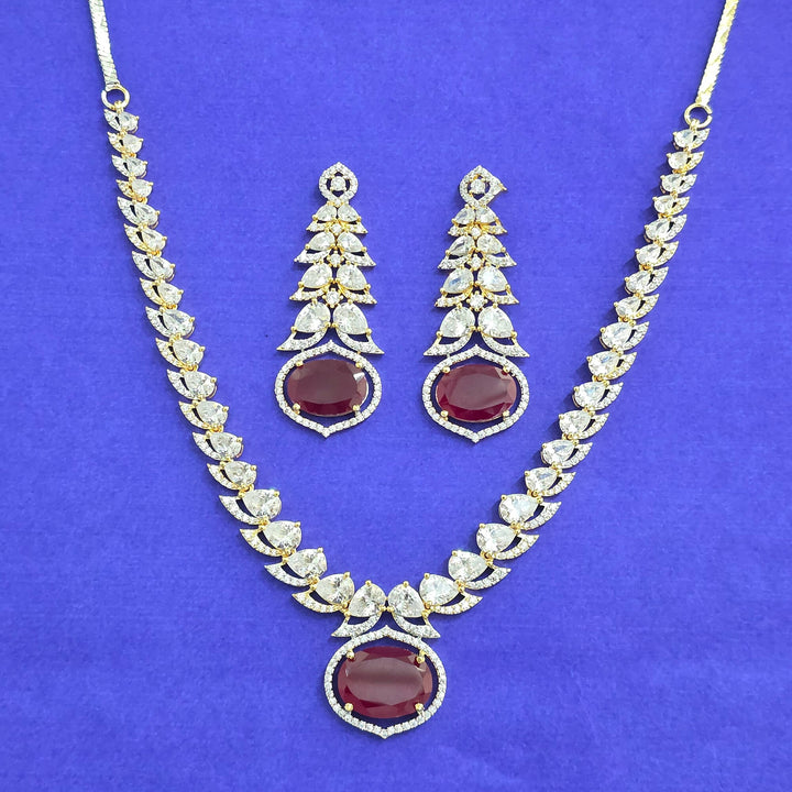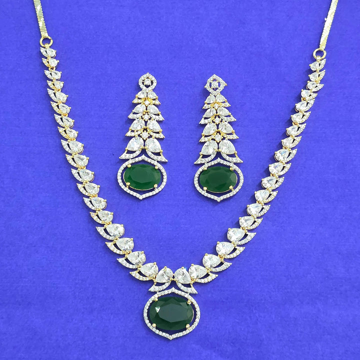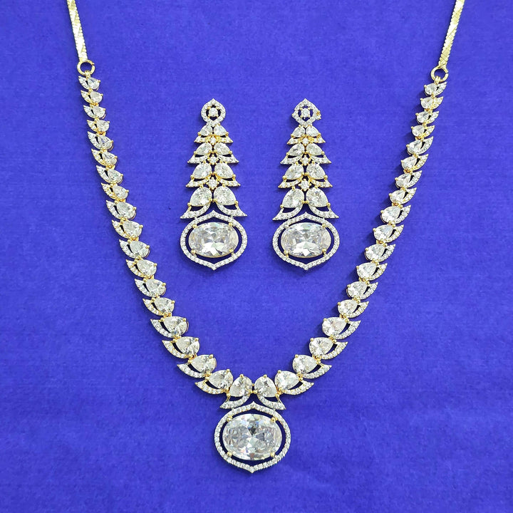 441766 American Diamond Classic Necklace Set With 2 Tone Plating