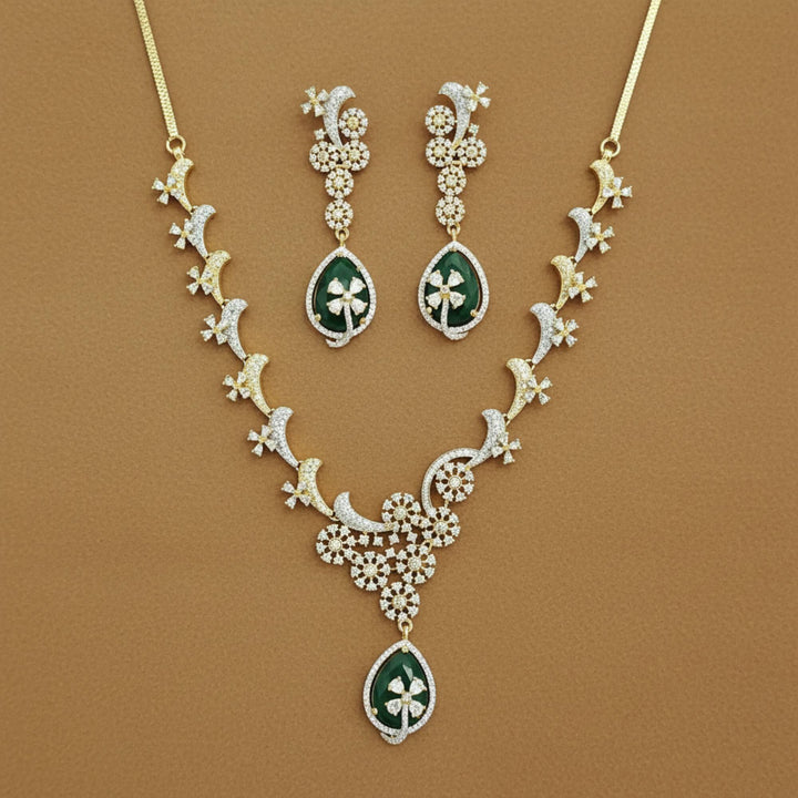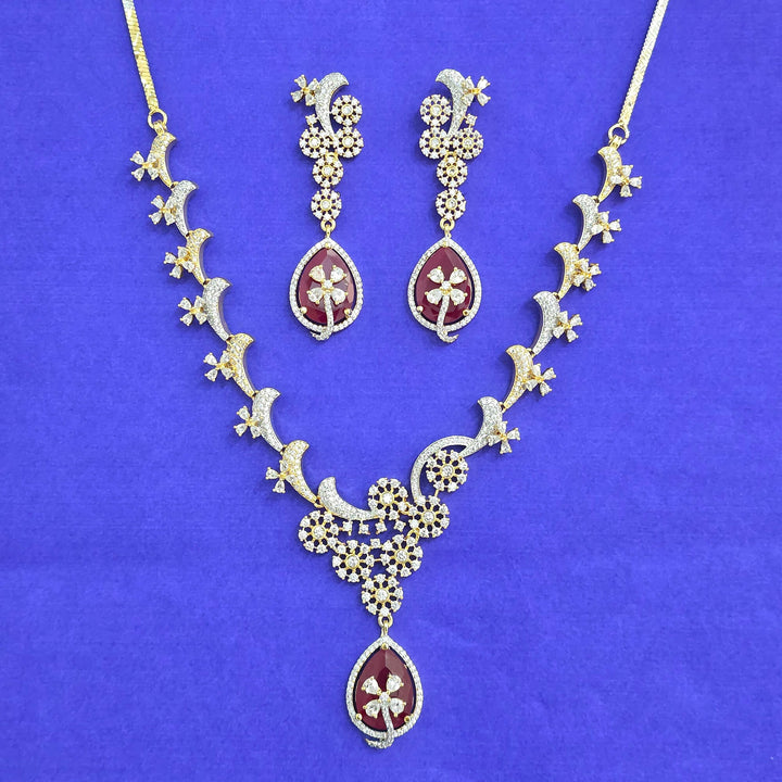 441768 American Diamond Classic Necklace Set With 2 Tone Plating