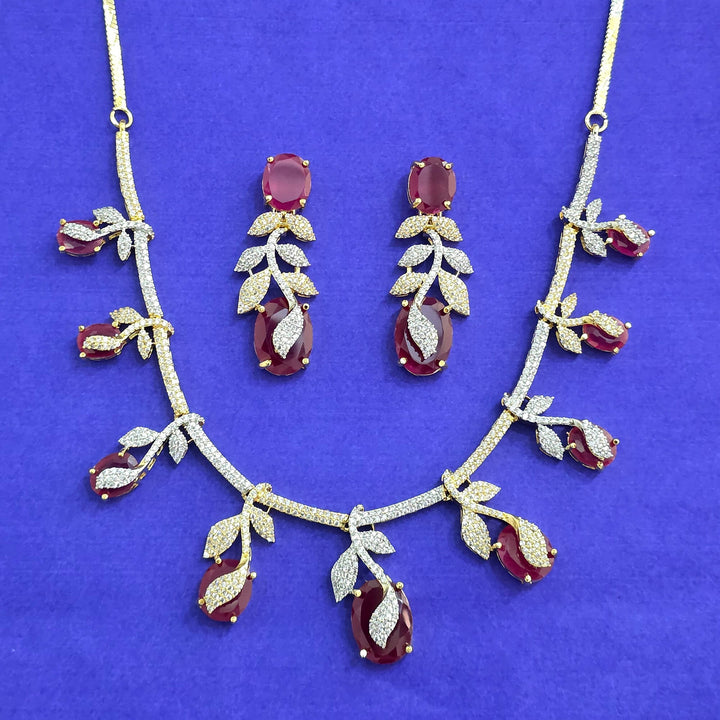 441773 American Diamond Classic Necklace Set With 2 Tone Plating