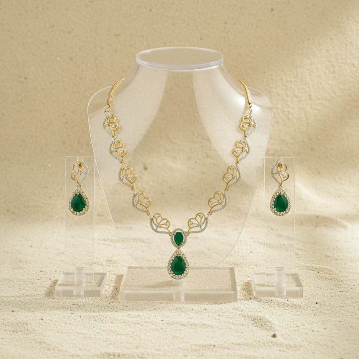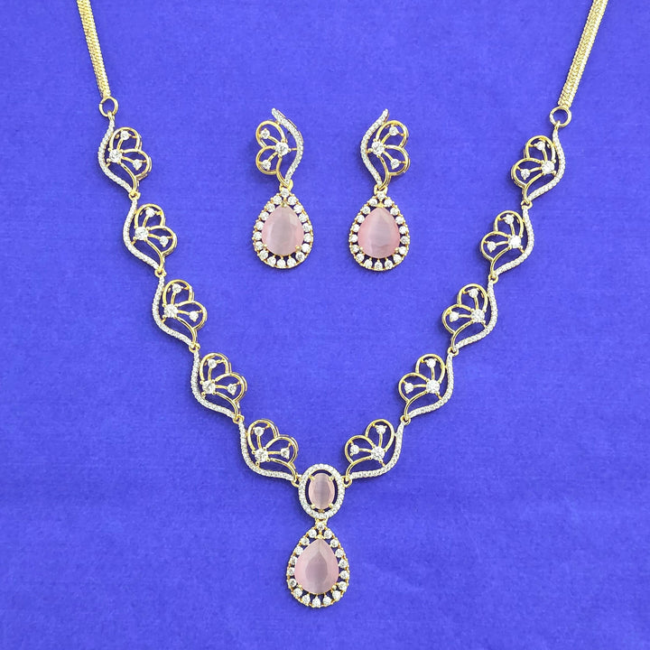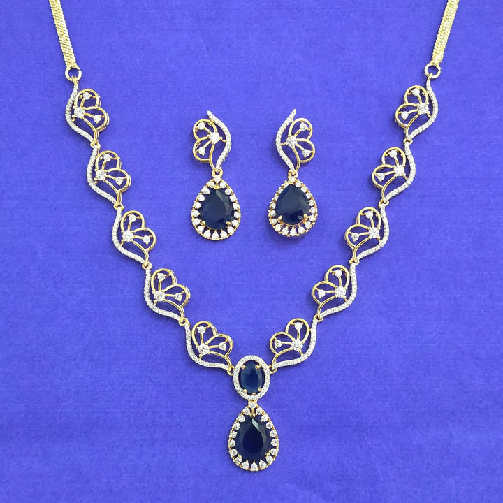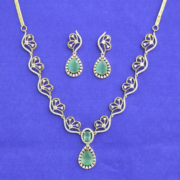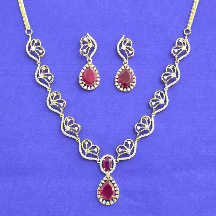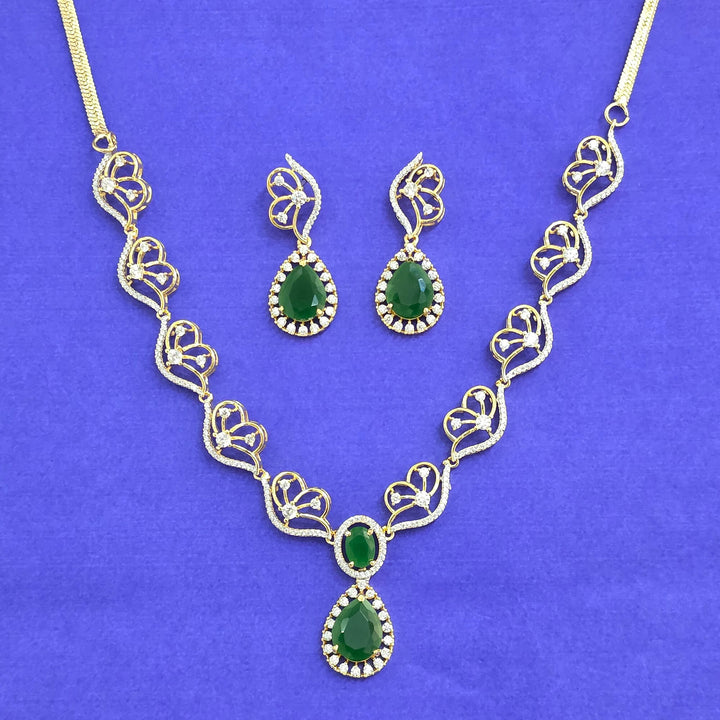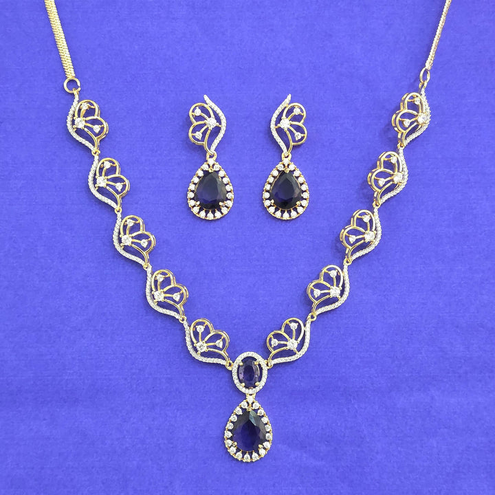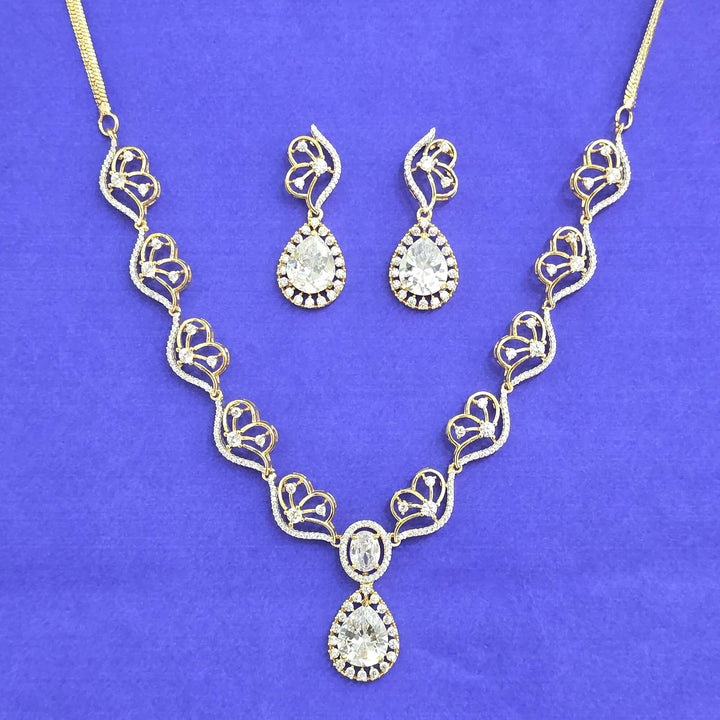 441792 American Diamond Classic Necklace Set With 2 Tone Plating