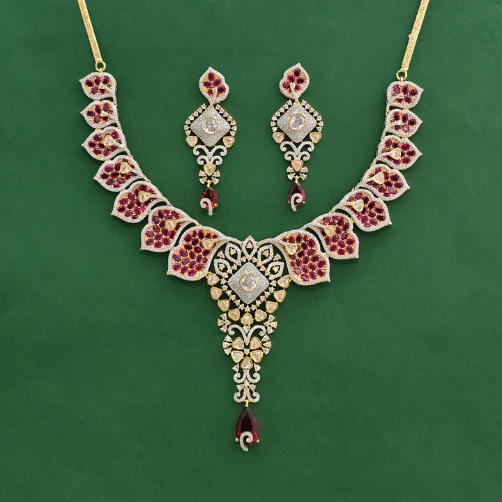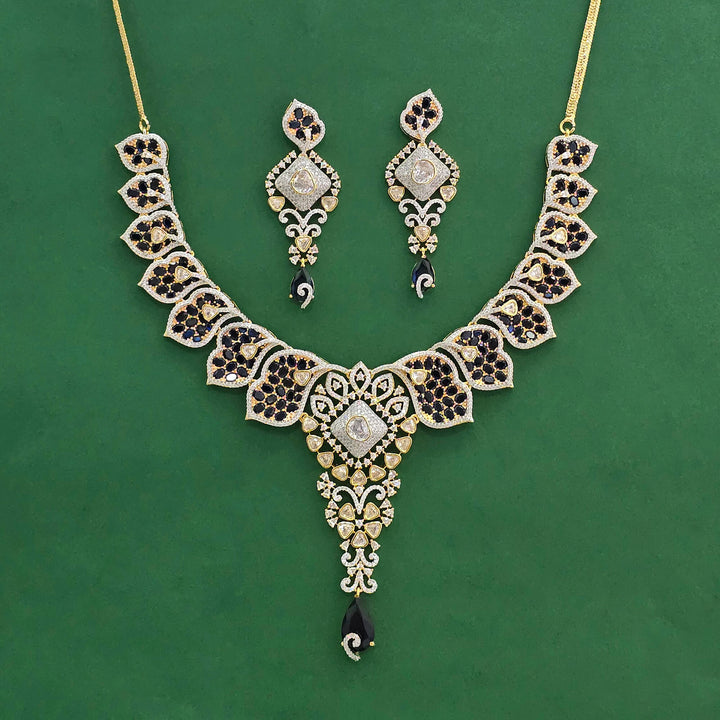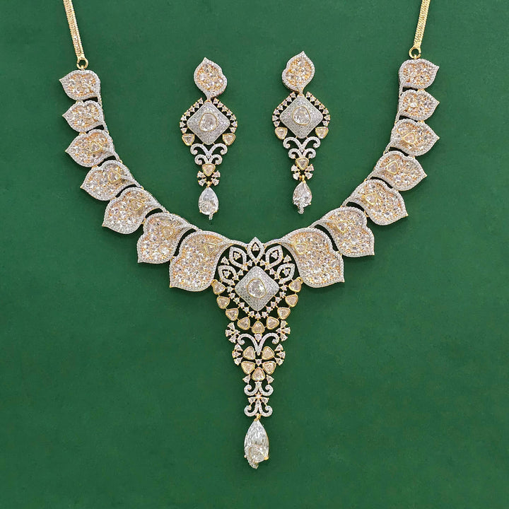 441818 American Diamond Classic Necklace Set With 2 Tone Plating