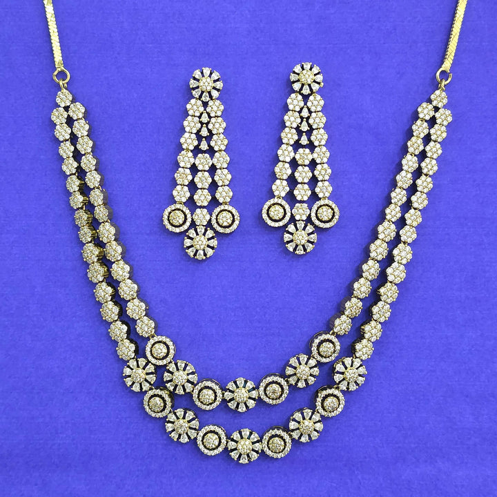 441668 American Diamond Classic Necklace Set With 2 Tone Rhodium Mehndi Plating