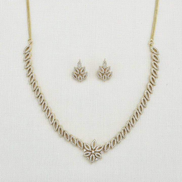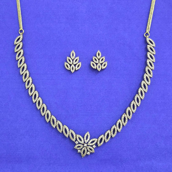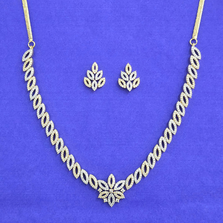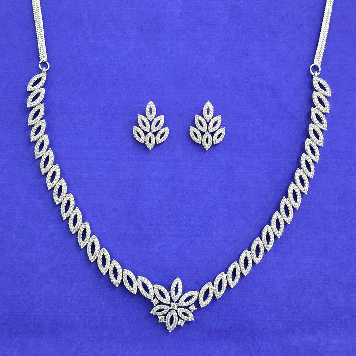 441802 American Diamond Classic Necklace Set With 2 Tone Rhodium Mehndi Plating