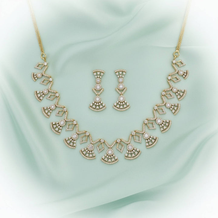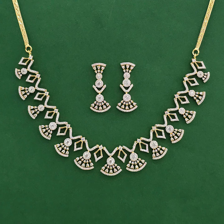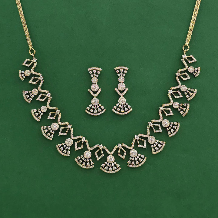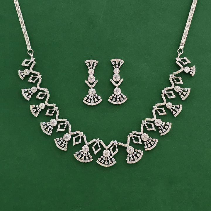 441805 American Diamond Classic Necklace Set With 2 Tone Rhodium Mehndi Plating