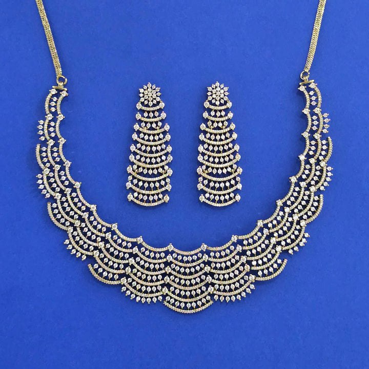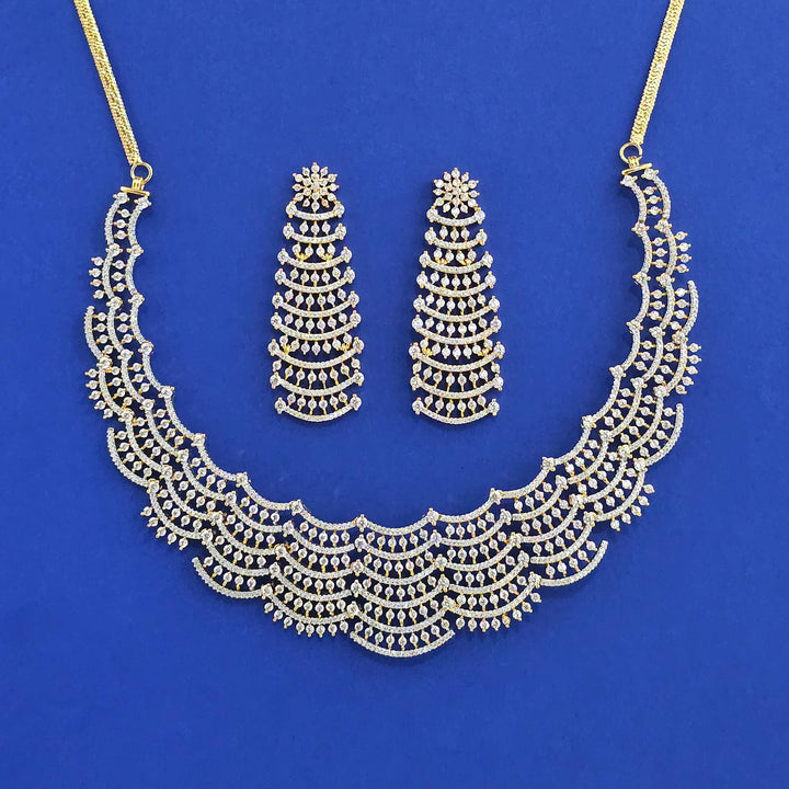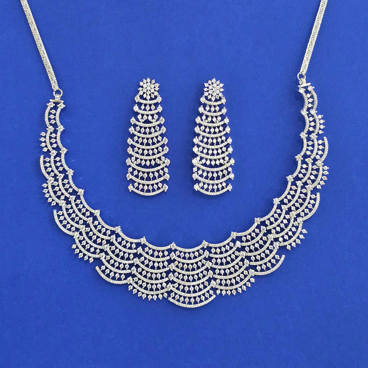 441806 American Diamond Classic Necklace Set With 2 Tone Rhodium Mehndi Plating