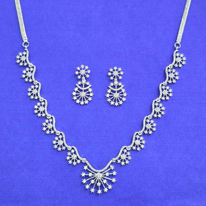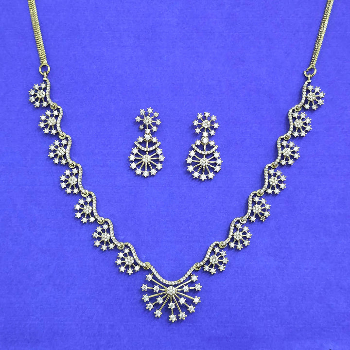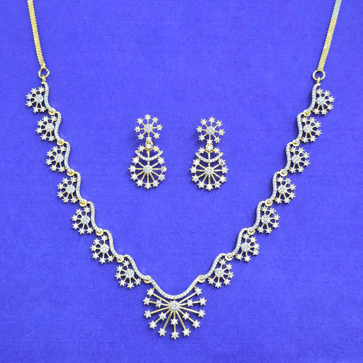441807 American Diamond Classic Necklace Set With 2 Tone Rhodium Mehndi Plating