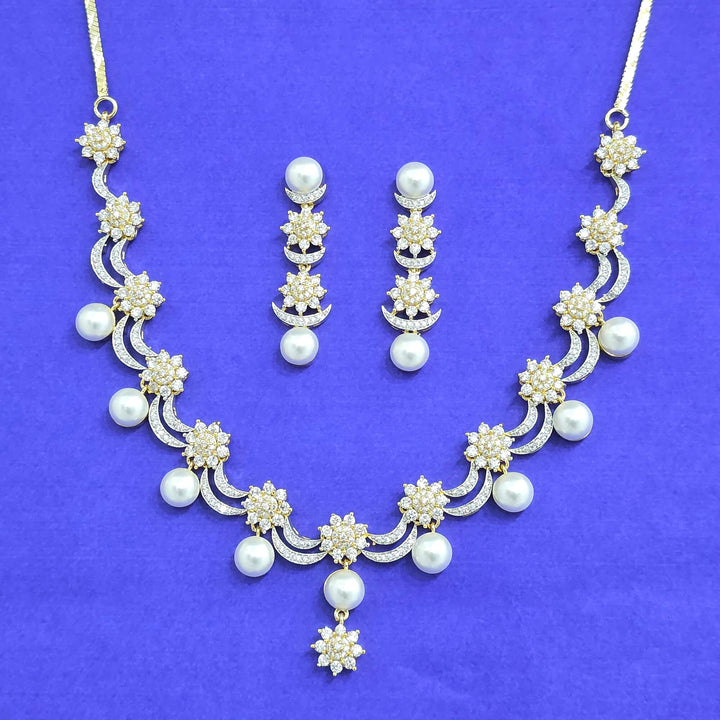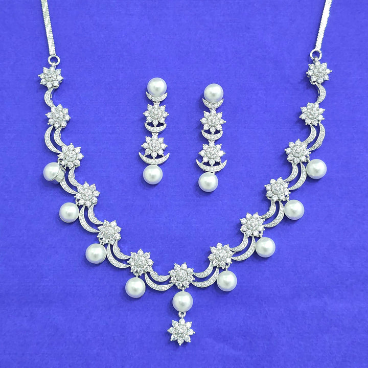 441760 American Diamond Classic Necklace Set With 2 Tone Rhodium Plating