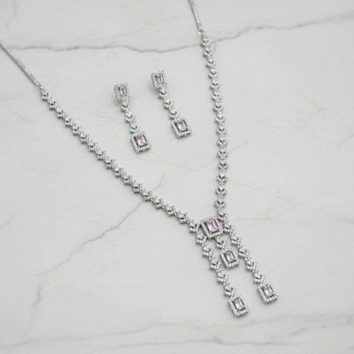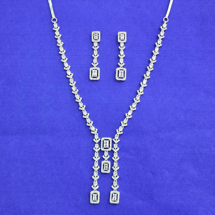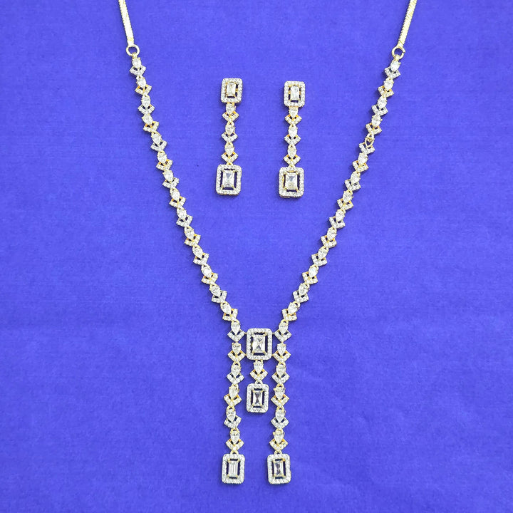 441764 American Diamond Classic Necklace Set With 2 Tone Rhodium Plating