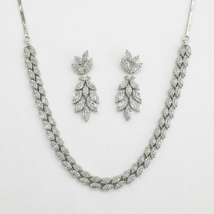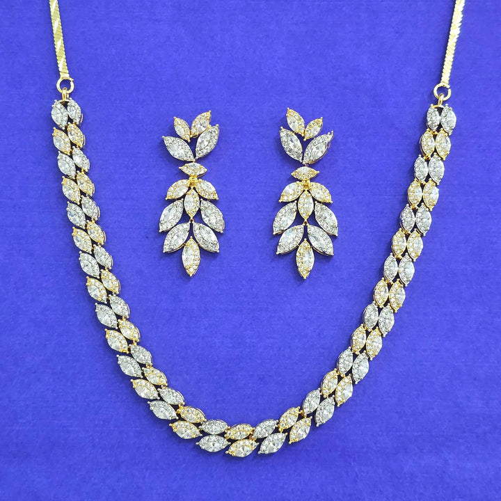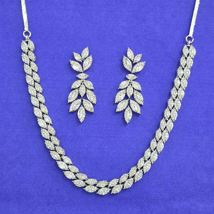 441772 American Diamond Classic Necklace Set With 2 Tone Rhodium Plating
