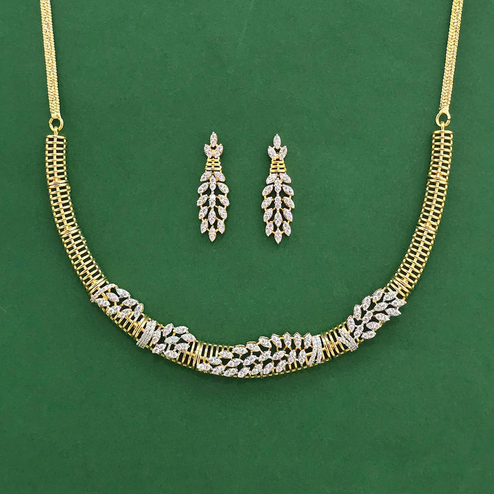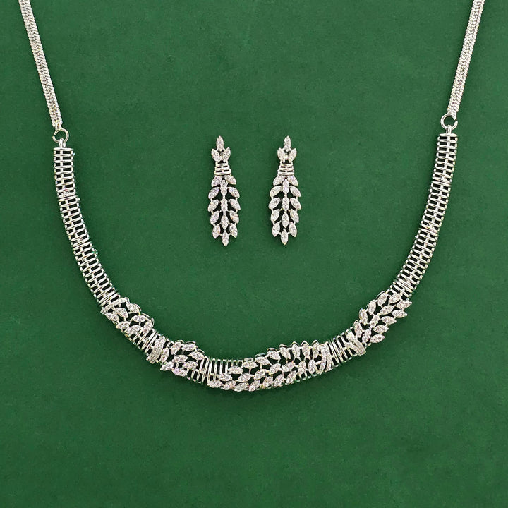 441803 American Diamond Classic Necklace Set With 2 Tone Rhodium Plating