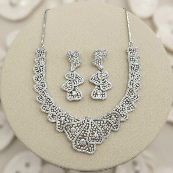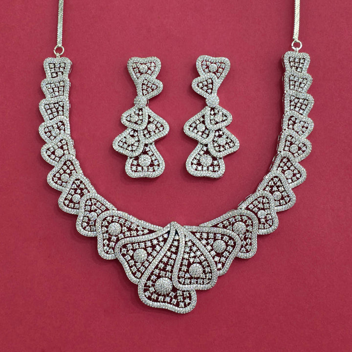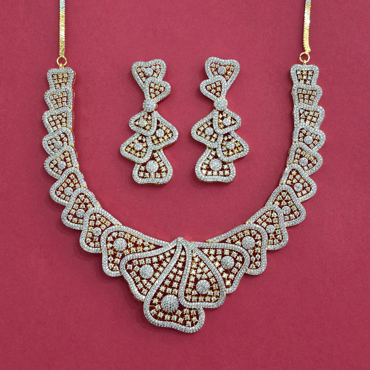 441858 American Diamond Classic Necklace Set With 2 Tone Rhodium Plating