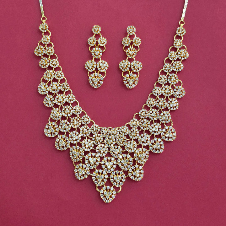 441520 American Diamond Classic Necklace Set With Gold Plating