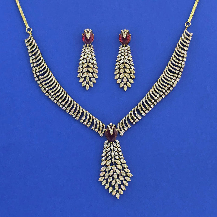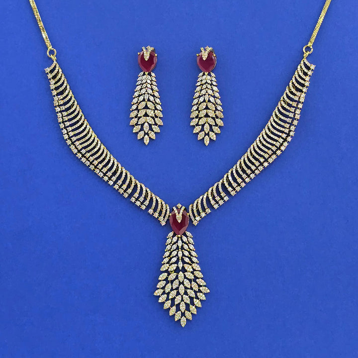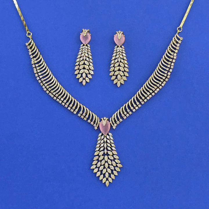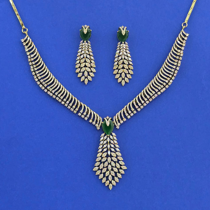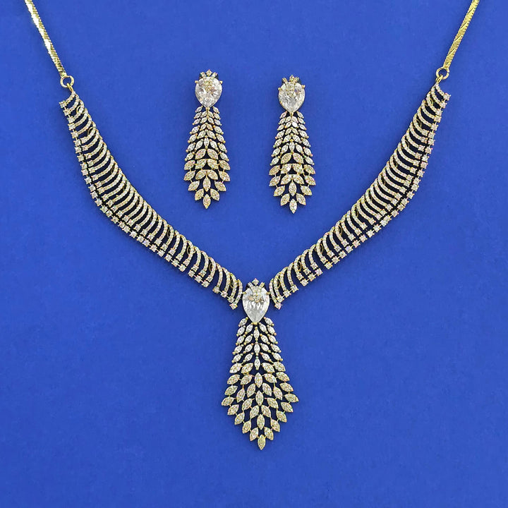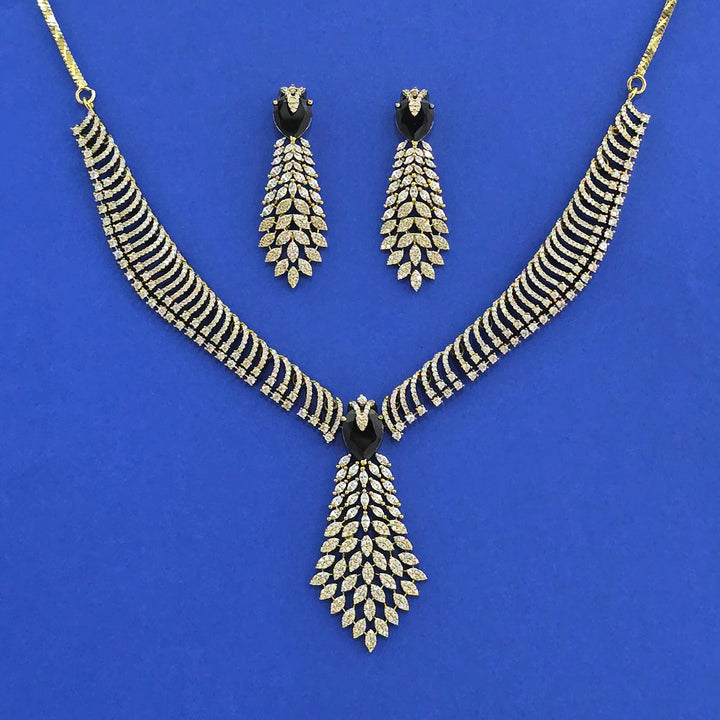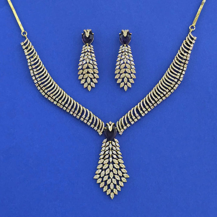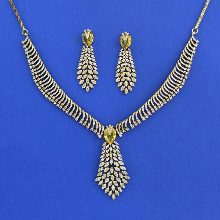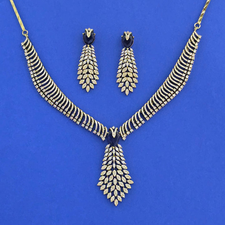 441517 American Diamond Classic Necklace Set With Mehndi Plating