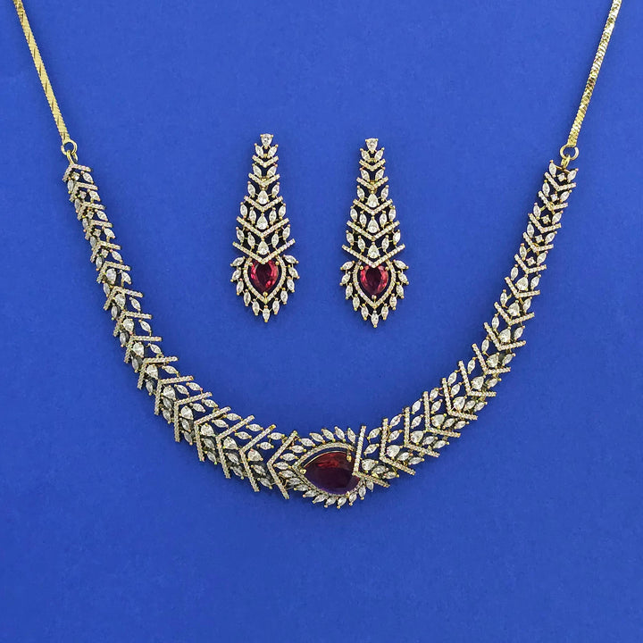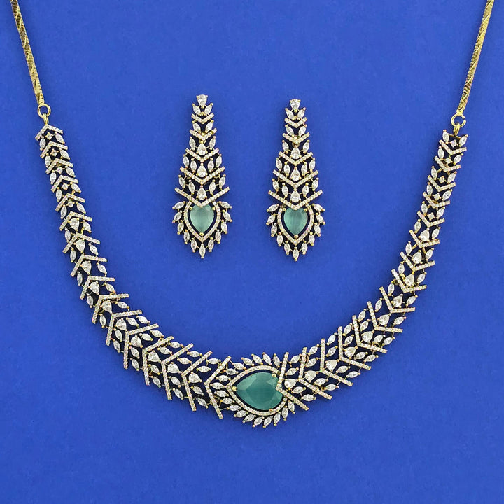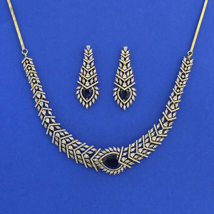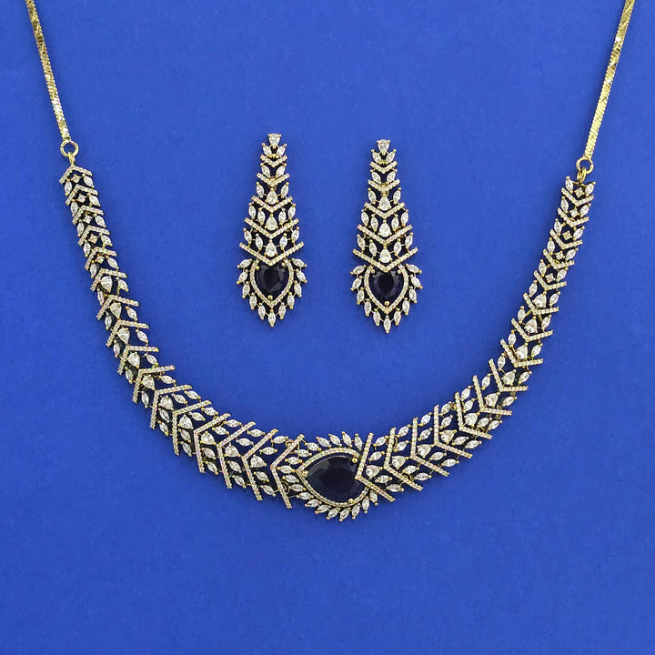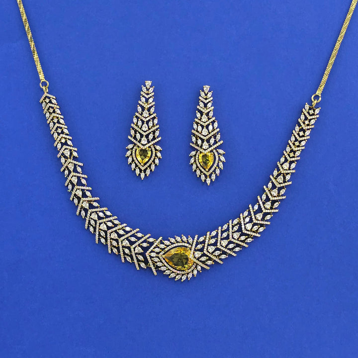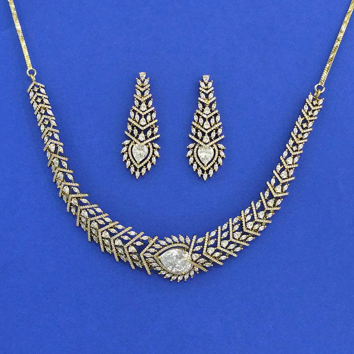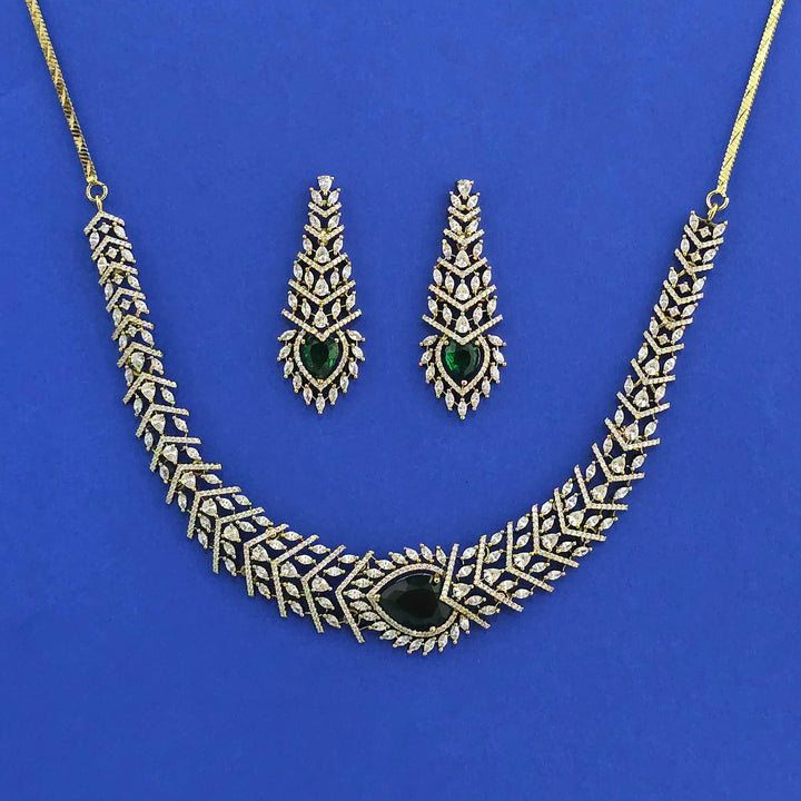 441518 American Diamond Classic Necklace Set With Mehndi Plating