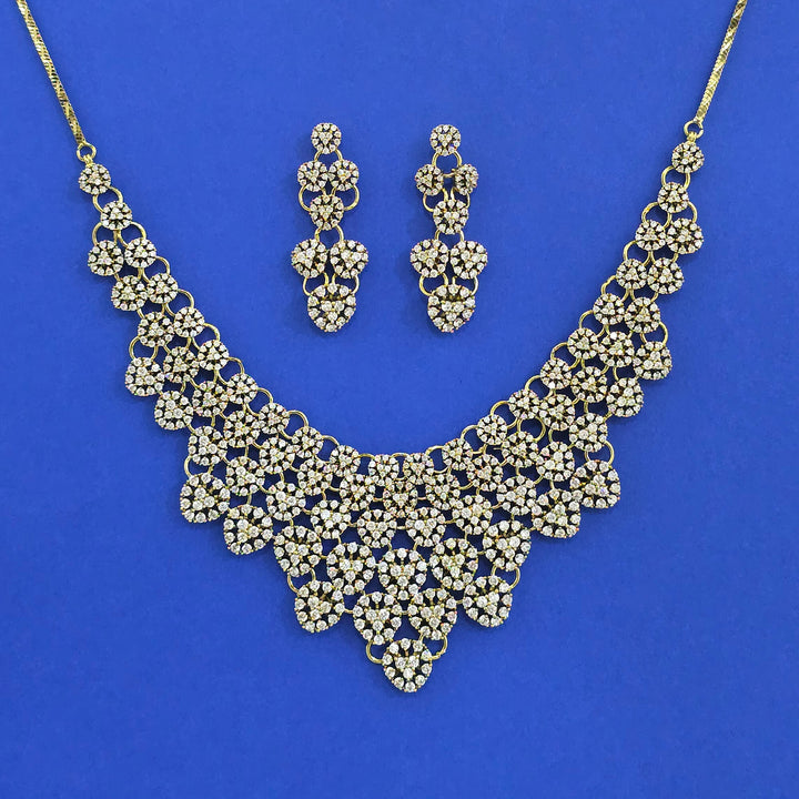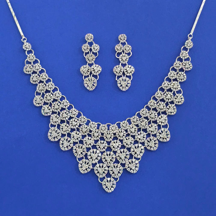 441521 American Diamond Classic Necklace Set With Rhodium Mehndi Plating