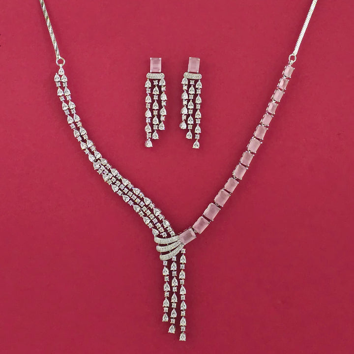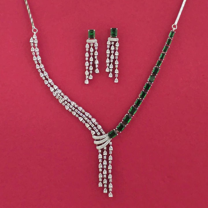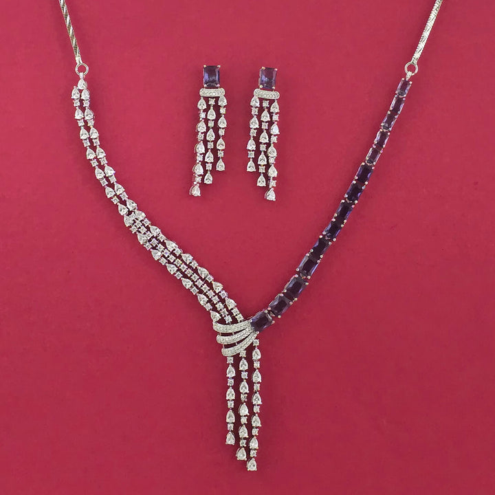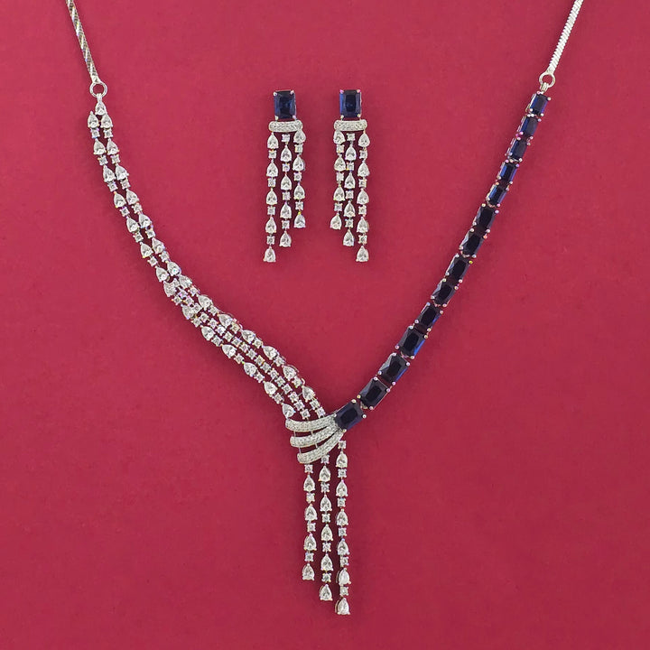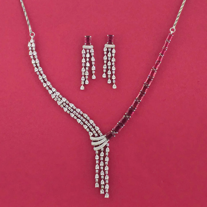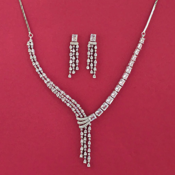 439217 American Diamond Classic Necklace Set With Rhodium Plating
