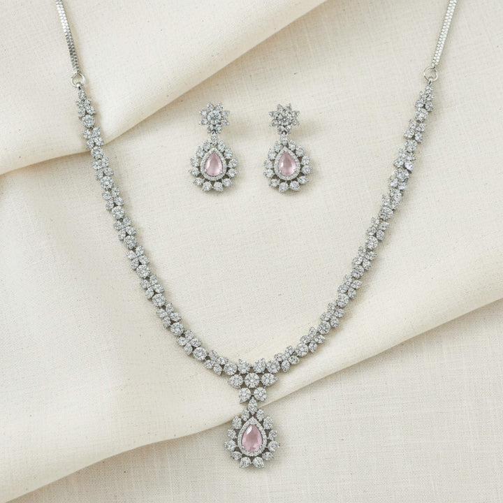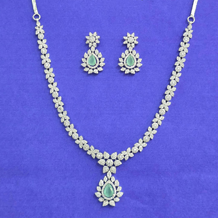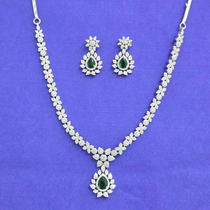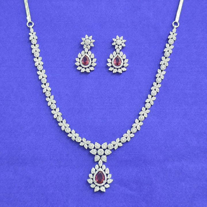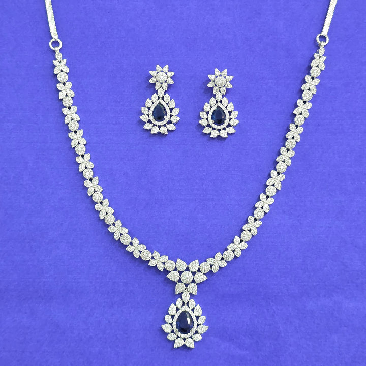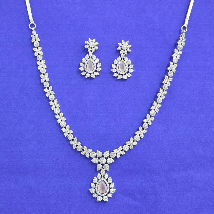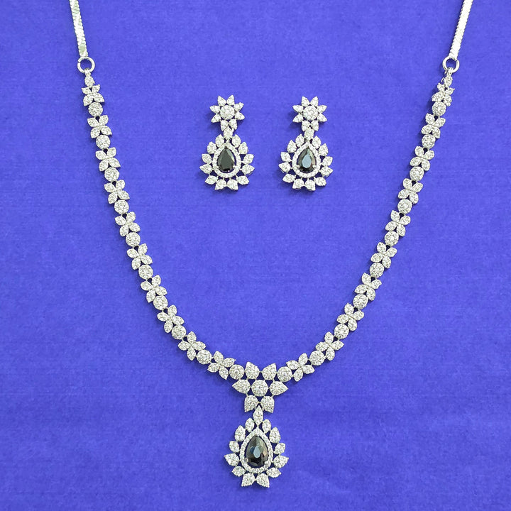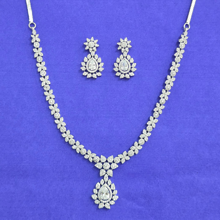 441667 American Diamond Classic Necklace Set With Rhodium Plating