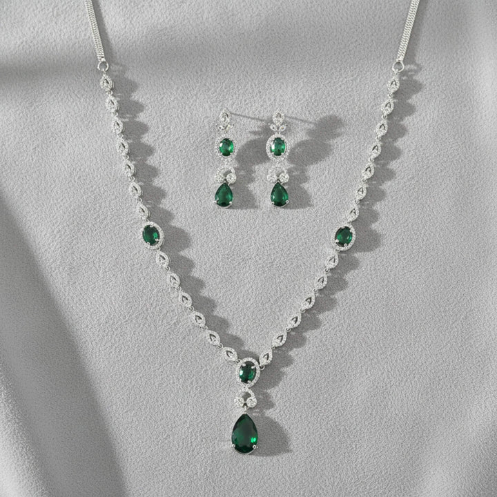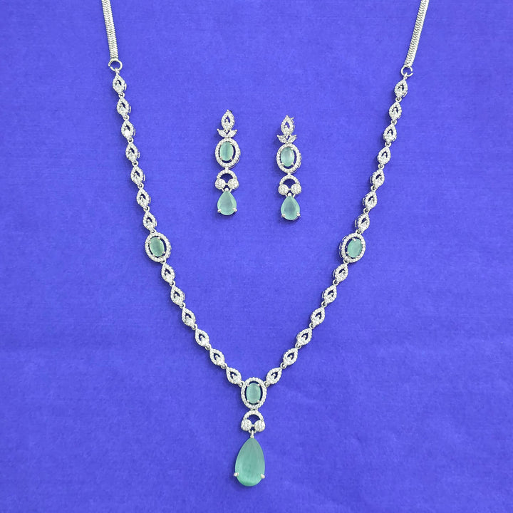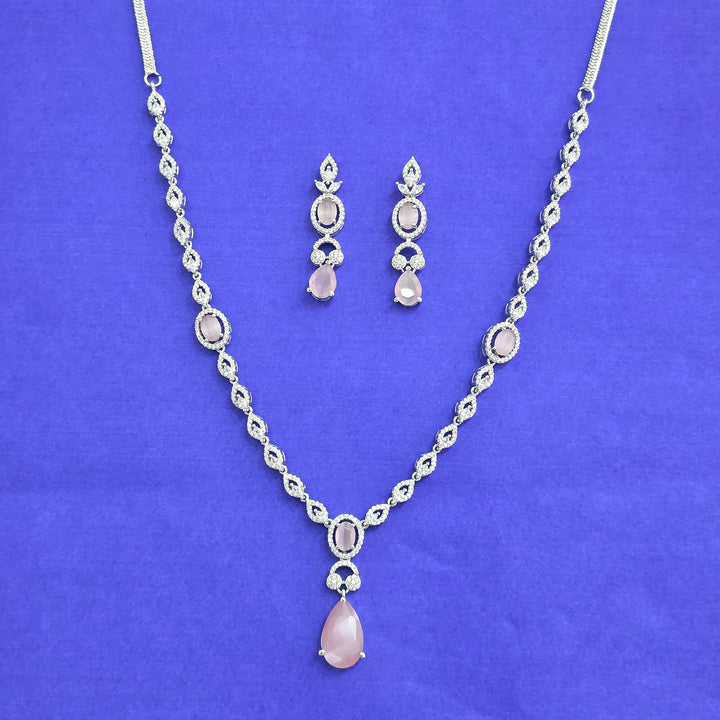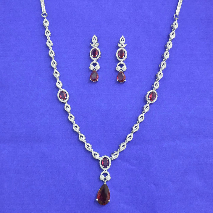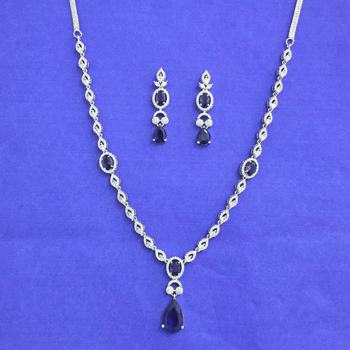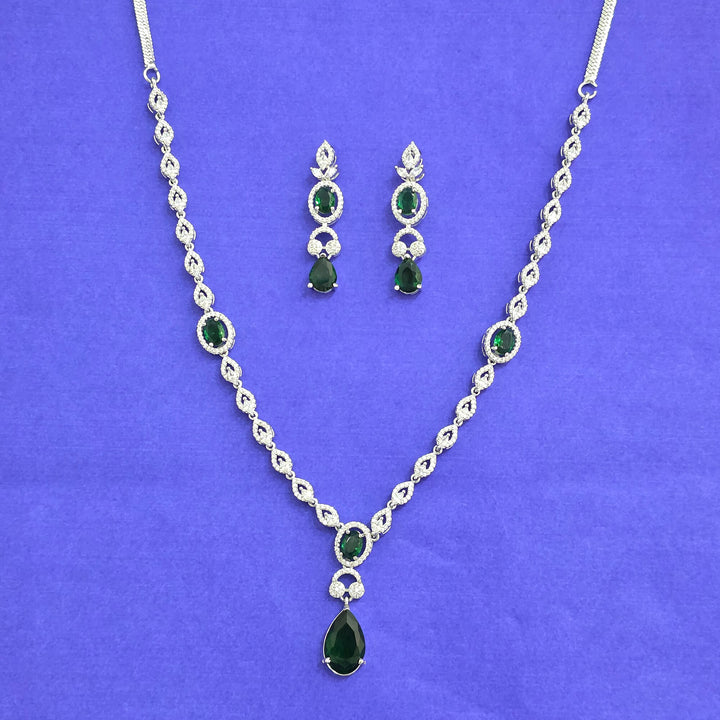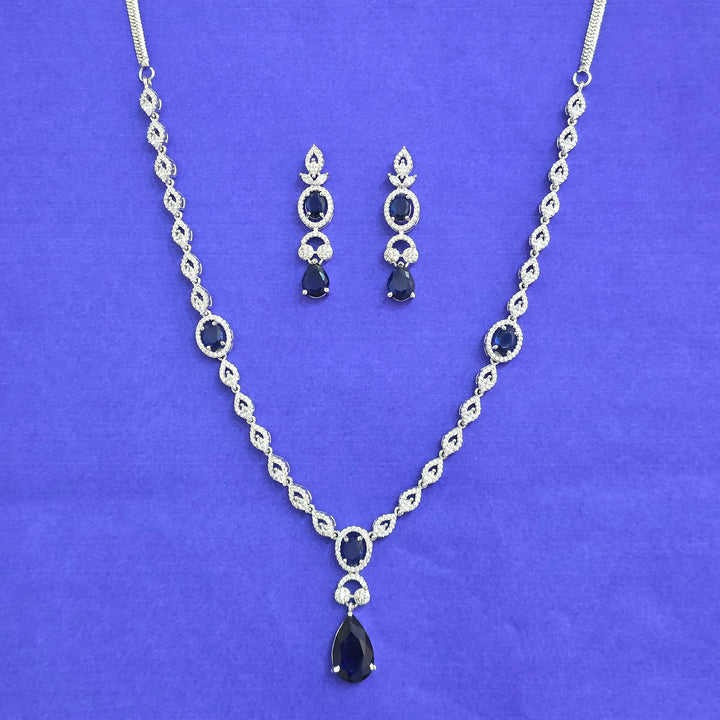 441791 American Diamond Classic Necklace Set With Rhodium Plating